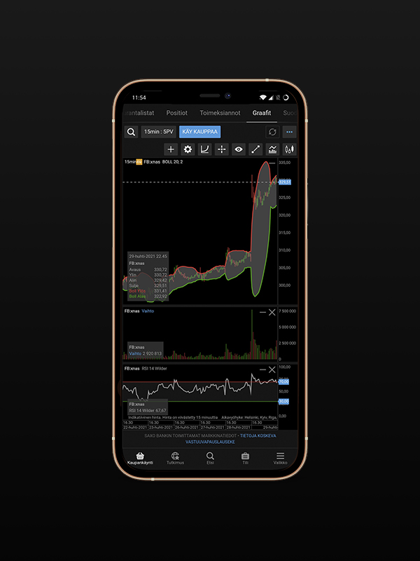 Traderin kehittyneet työkalut auttavat tulkitsemaan markkinaliikkeitä ja valitsemaan kiinnostavia kohteita salkkuusi. Saatavillasi on kymmeniä markkinoita ja kymmeniä tuhansia sijoituskohteita ympäri maailman.